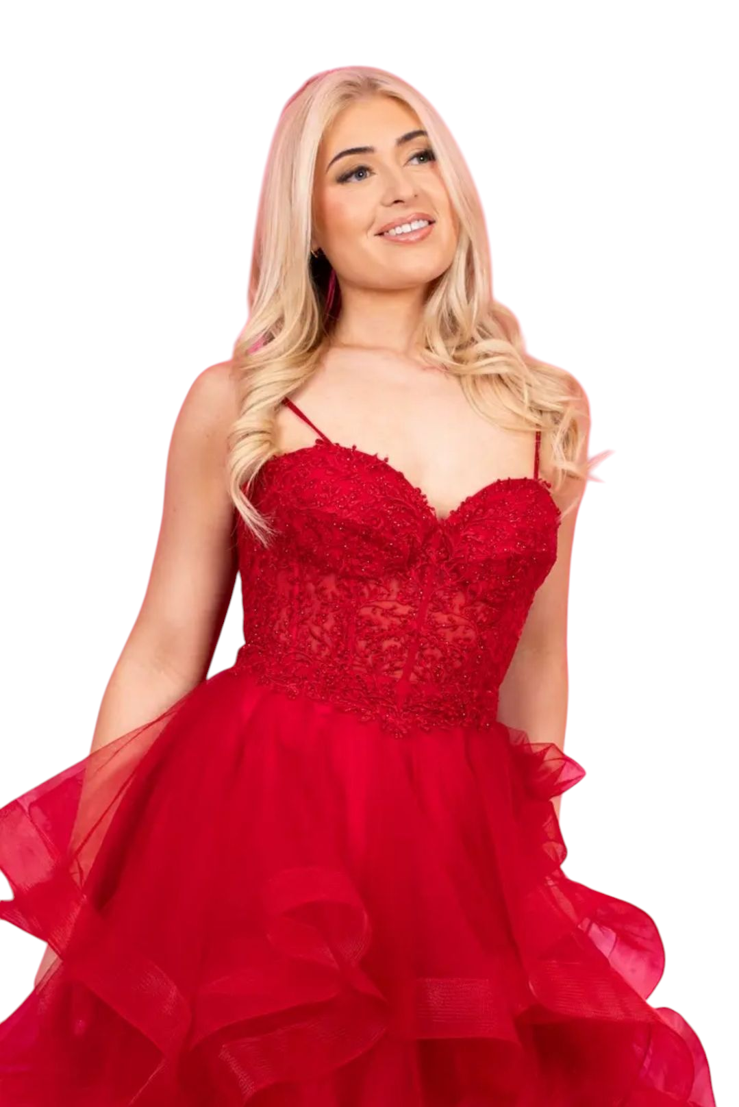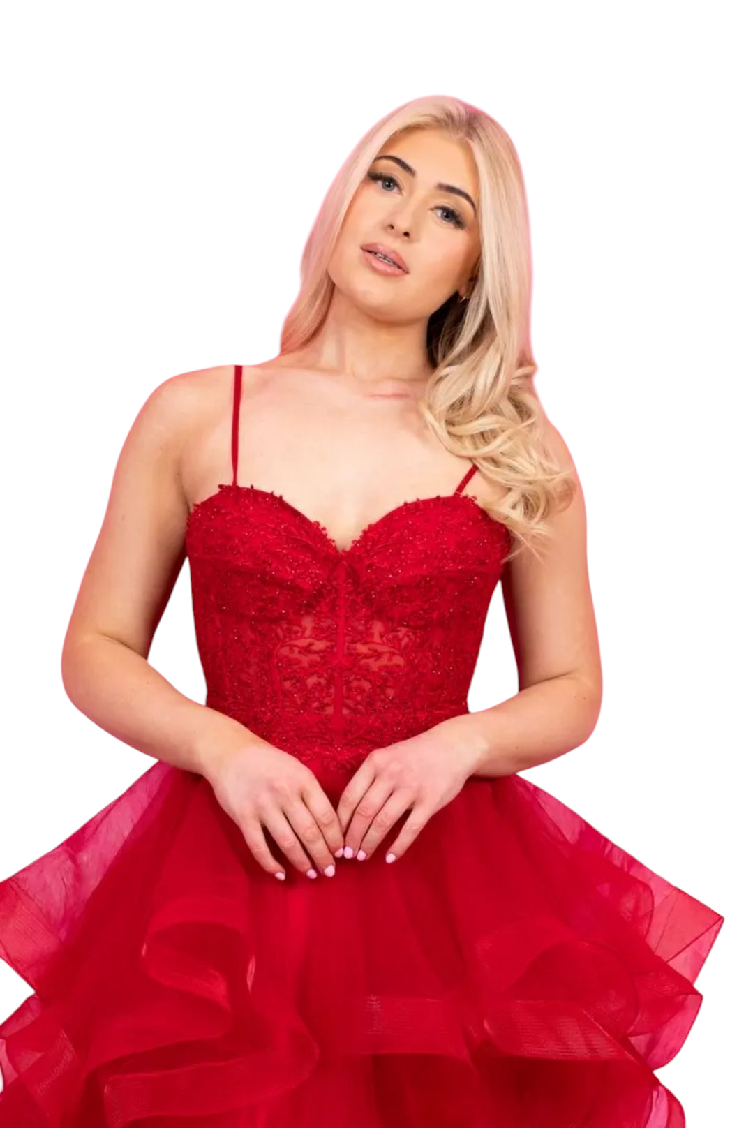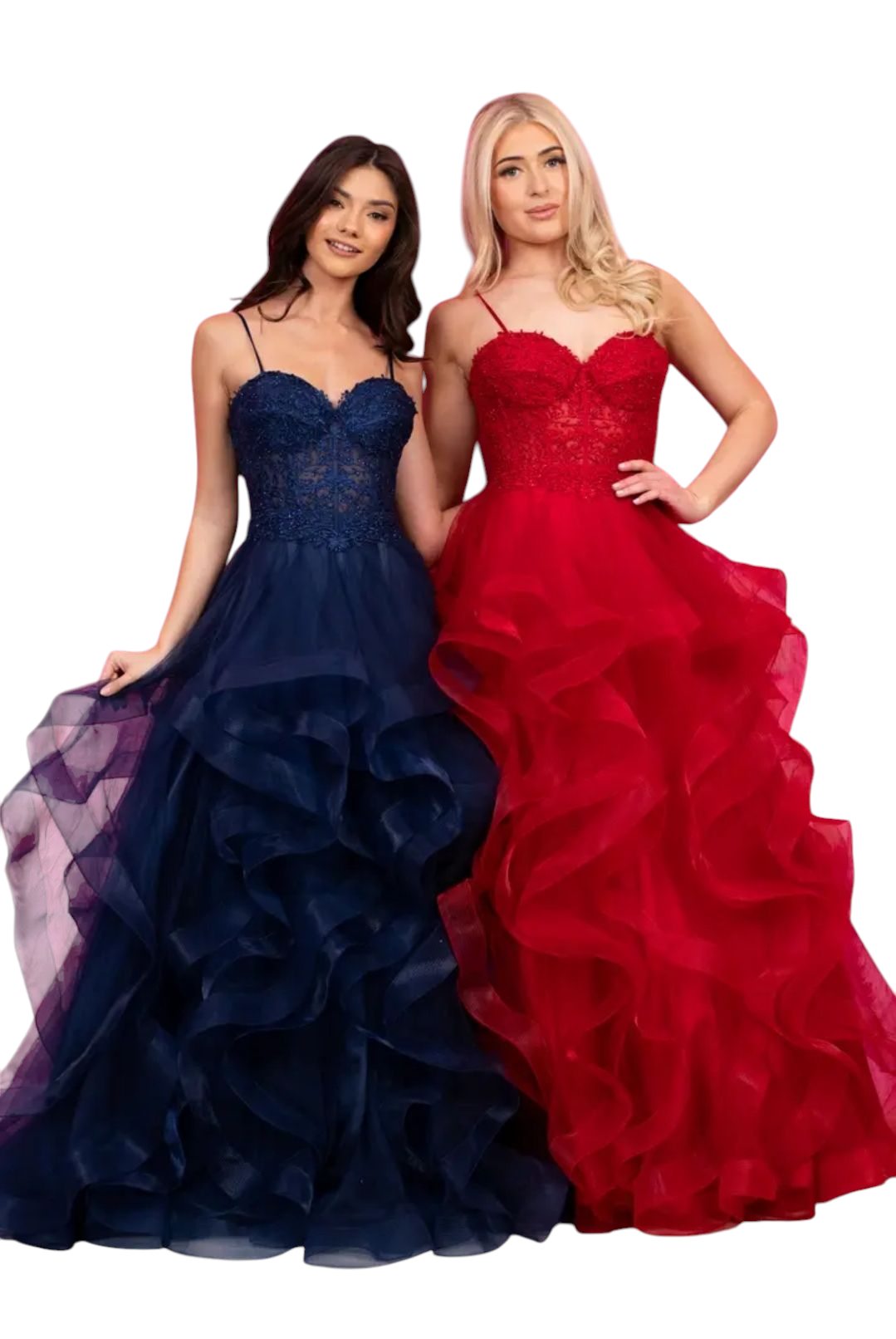 This Ariel dress is adorned with luxury tulle and elegant ruffles, making it the perfect showstopper for any event. With its glamorous design, it will make you feel like a true princess. Perfect for formal occasions, weddings, and red carpet events.