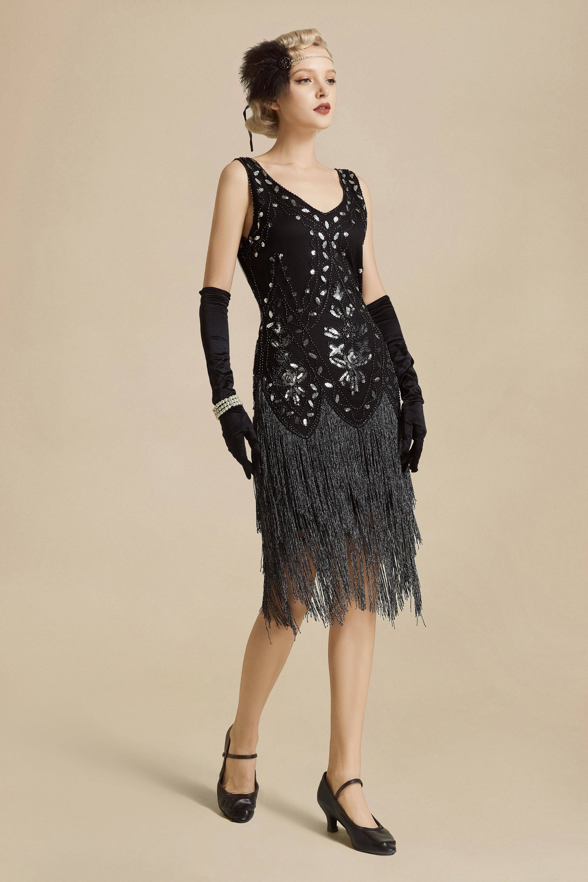 This elegant dress is classic vintage look for a modern woman. The eyecatching design features art deco print and unique vintage style which bring you back to the roaring twenties. Features: * Sexy v neck style * Sleeveless design * Midi length dress * Fabulous floral pattern Note: This dress comes with an unique size chart. Be sure to select your ideal fit from the chart before making your purchase.