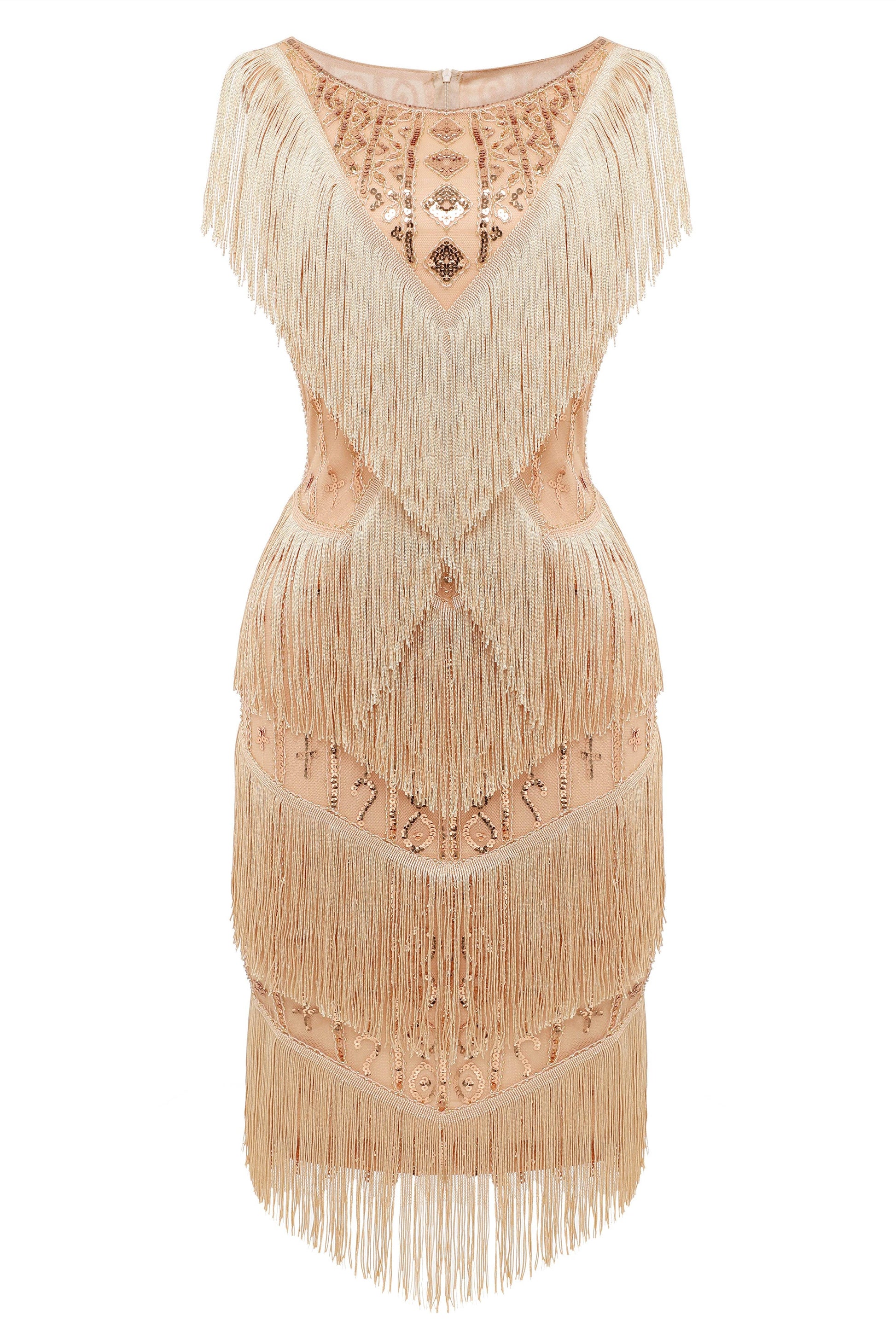 Spiritual fringe with the breeze of Golden Age gently swaying, wear this dress to a dance, your dance steps will be full of retro rhythm. Features: * Multi-layered tassel * Mini length dress * Decorative sequins * Retro-glamorous style *The item is clearance sale and cannot be returned or exchanged.