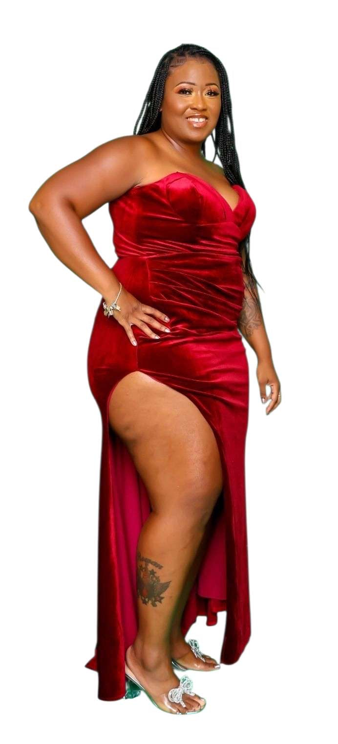 Bonnie perfectly embodies the timeless elegance of old Hollywood, blending it with a modern energy that is both refreshing and captivating. Its luxurious design boasts a velvet mermaid skirt paired with a corset-inspired bodice, and is embellished with stunning jewel tones. Versatile and striking, this dress even comes with detachable gloves for added drama.