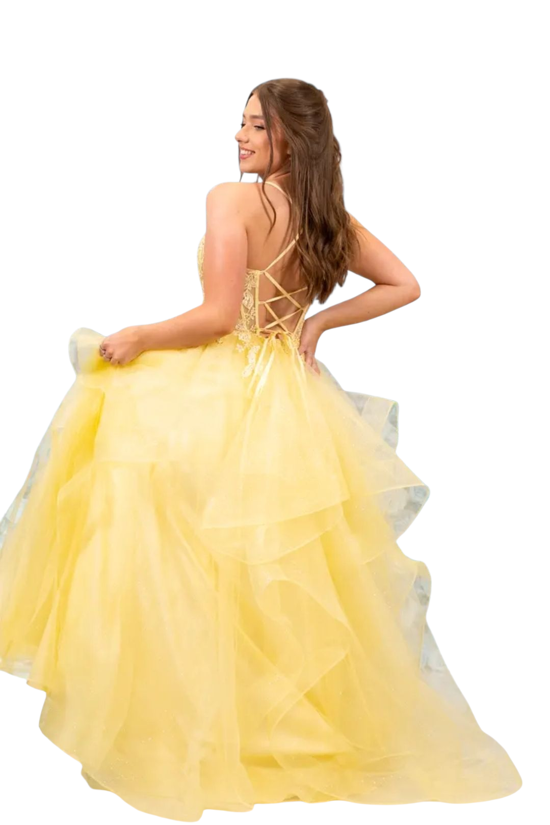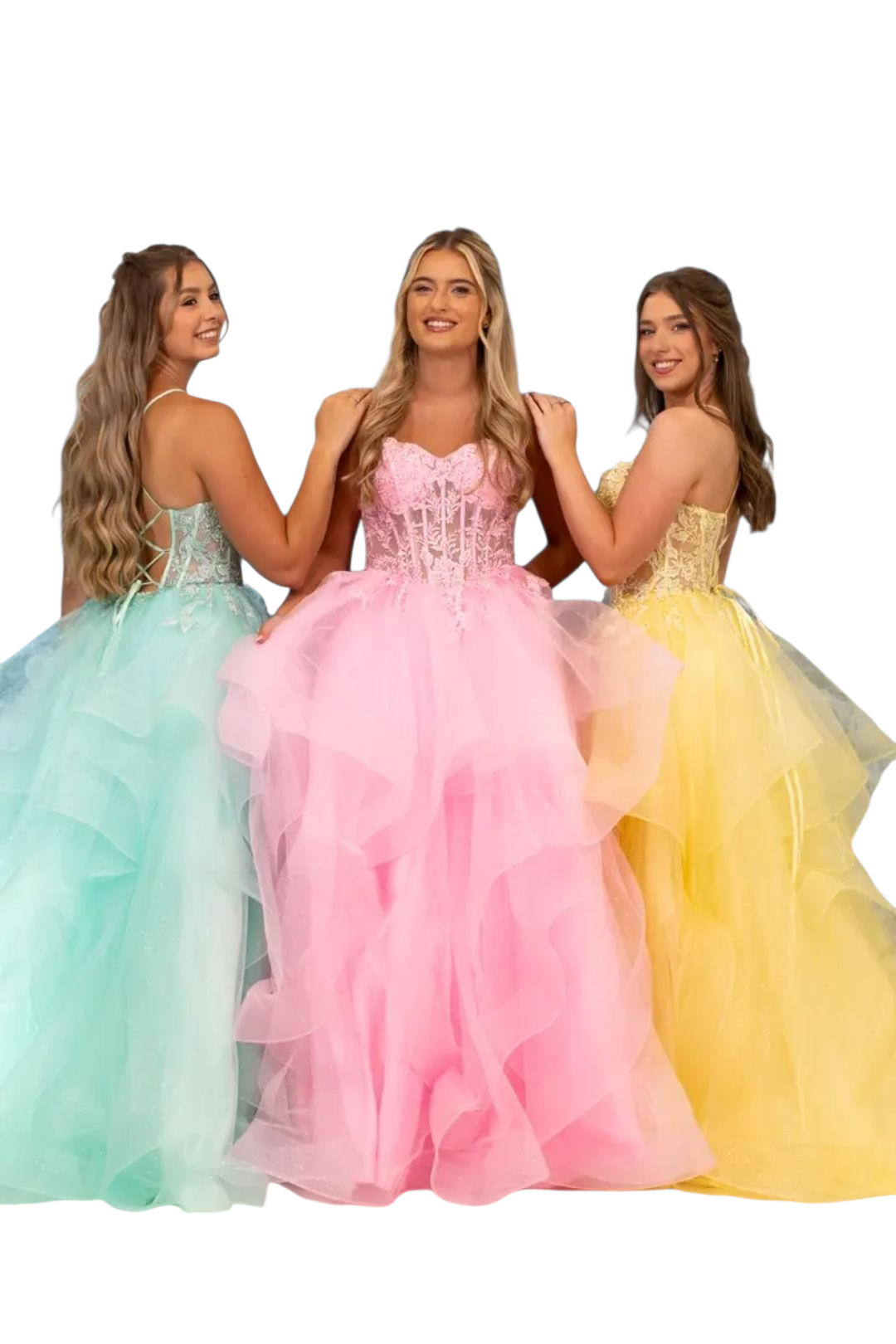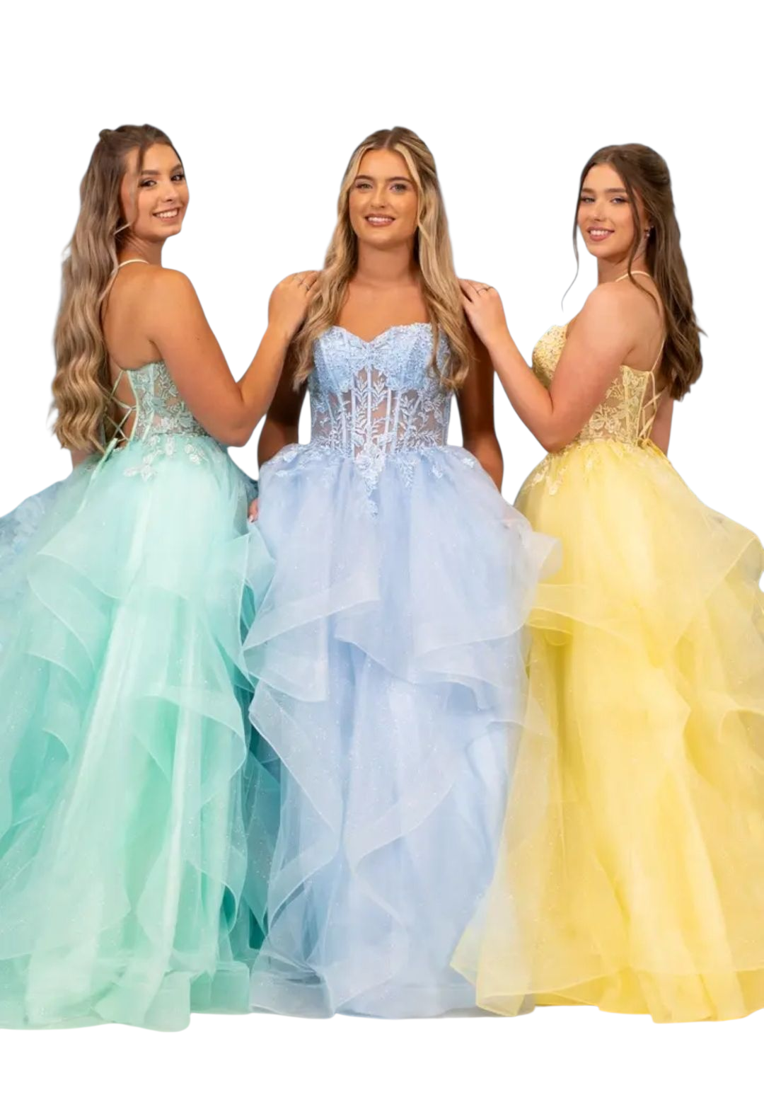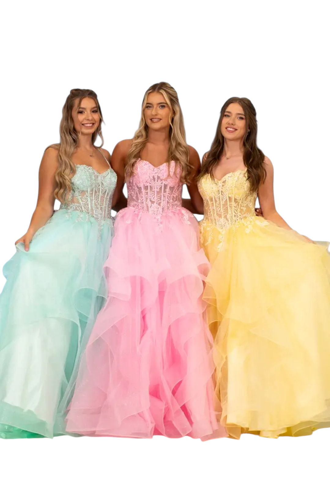 Victoria is a stunning ballgown with a layered ruffled frilled skirt for a truly exquisite look. Perfect for any special occasion, this elegantly designed dress will make you stand out with its unique and eye-catching design. With its beautiful layers and frills, you'll be sure to make a statement wherever you go.