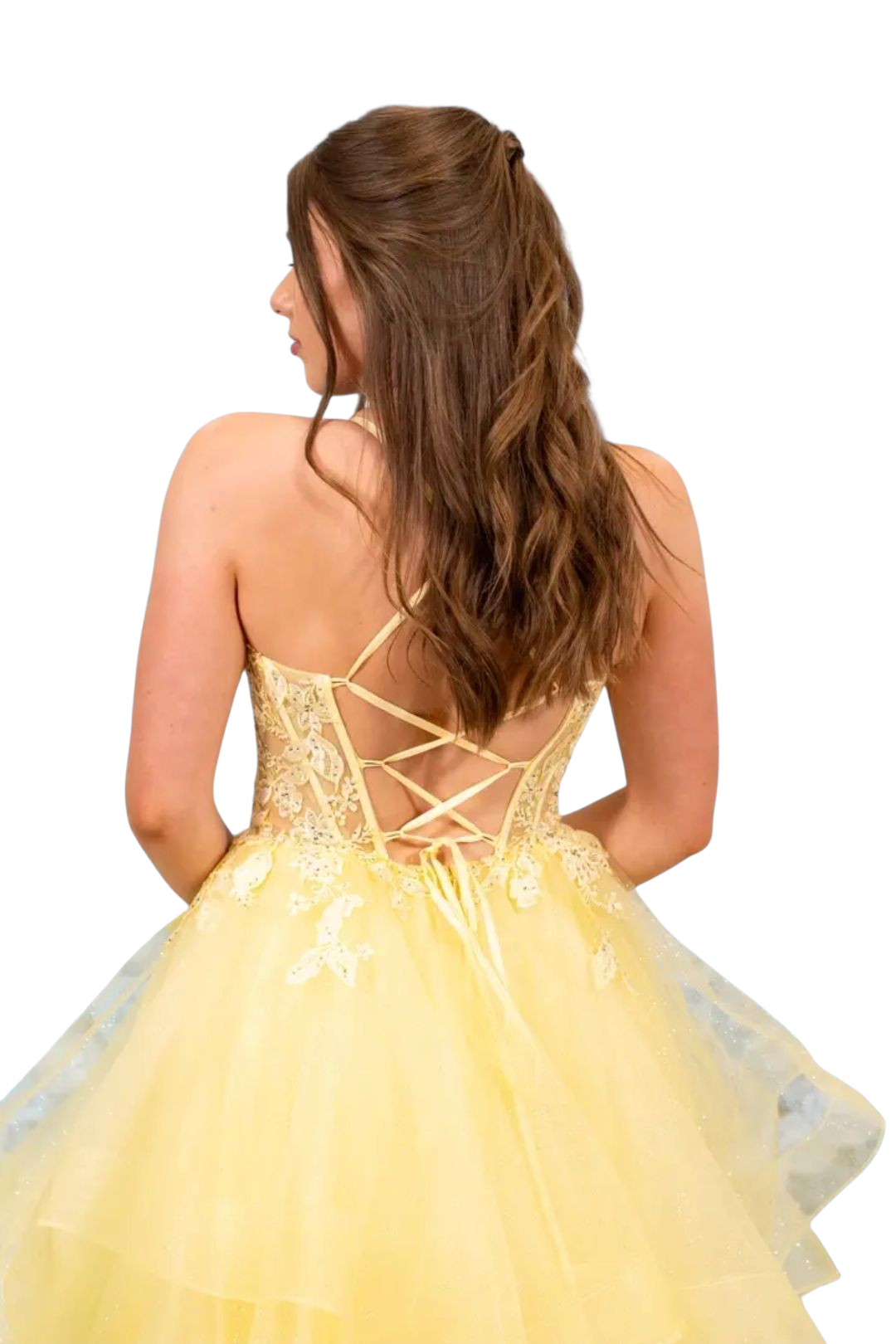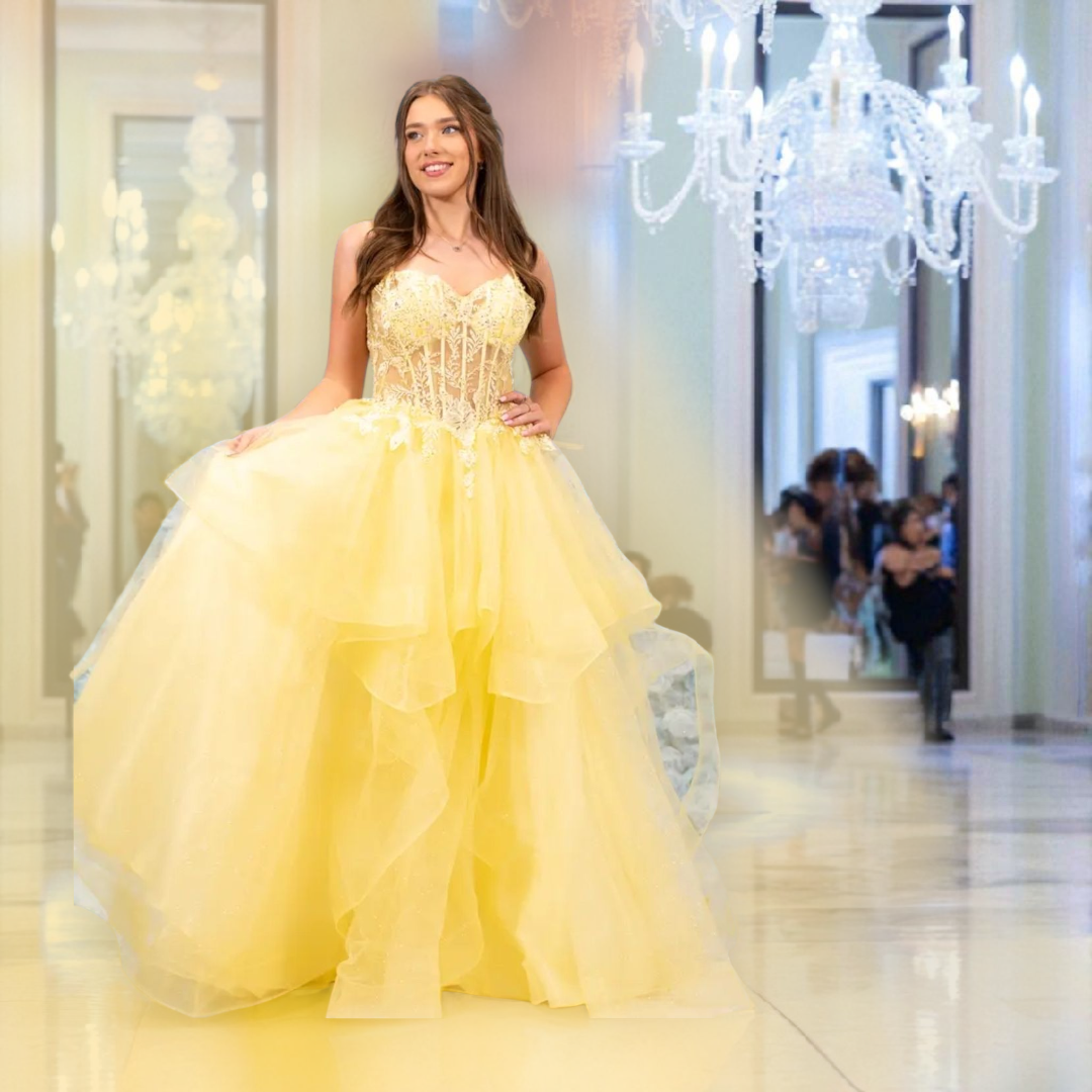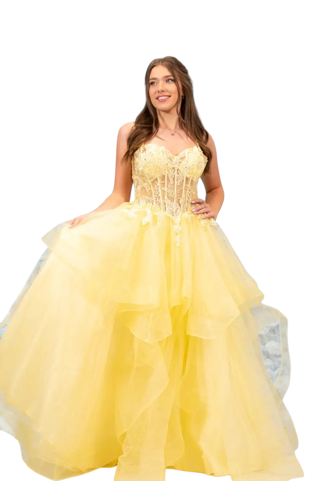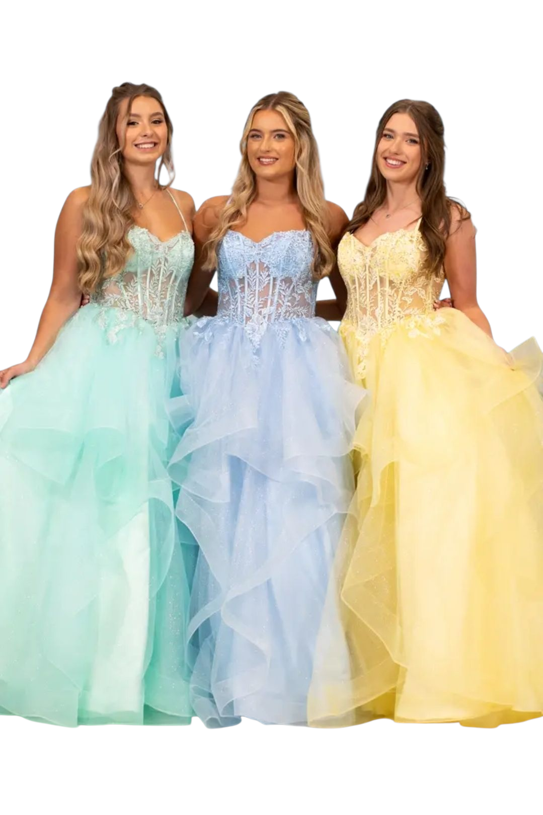Victoria is a stunning ballgown with a layered ruffled frilled skirt for a truly exquisite look. Perfect for any special occasion, this elegantly designed dress will make you stand out with its unique and eye-catching design. With its beautiful layers and frills, you'll be sure to make a statement wherever you go.